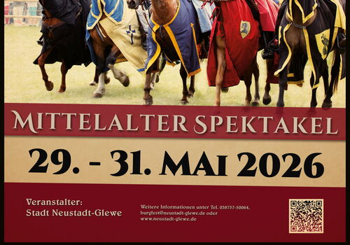 Buďte s námi letos součástí nádherného a jedinečného hradního festivalu a zažijte historii na vlastní kůži na našem hradě Neustadt-Glewe, který se bude konat pod mottem „Cesta časem do vrcholného a pozdního středověku“. Těšte se s námi na 33. hradní festival Neustadt-Glewe od 29. do 31. května 2026. Předprodej začne online, jako obvykle, 1. dubna 2026. Další informace o hradním slavnosti